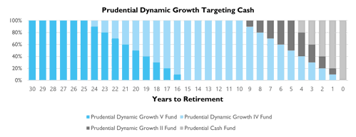 Prudential Dynamic Growth Lifestyle Targeting Cash (Default) Prudential Dynamic Growth Lifestyle Targeting Retirement Options |